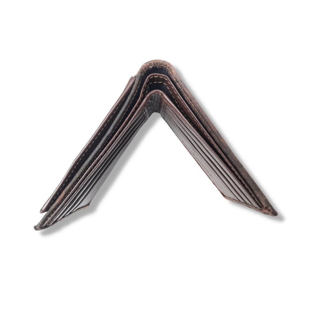 Cartera elaborada con piel cuello de toro en la parte exterior y suave piel interior corte vacuno en el interior.