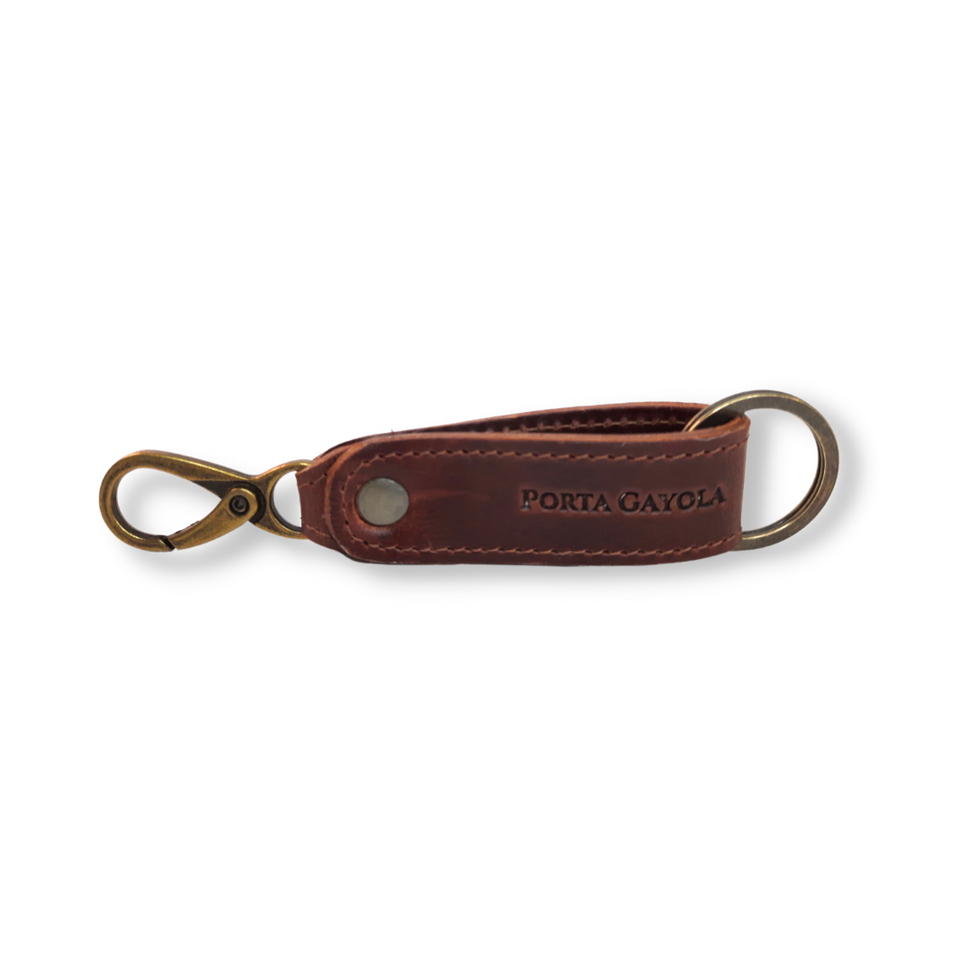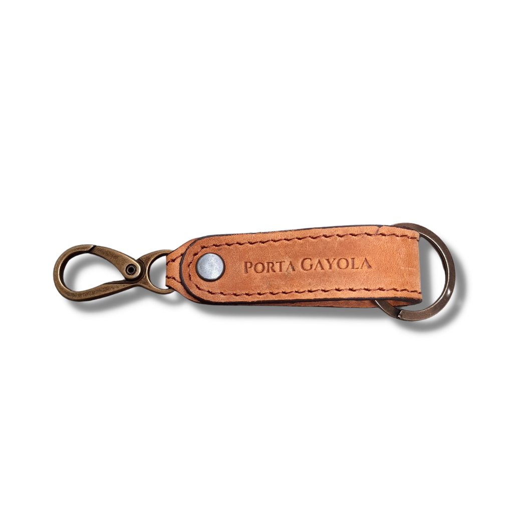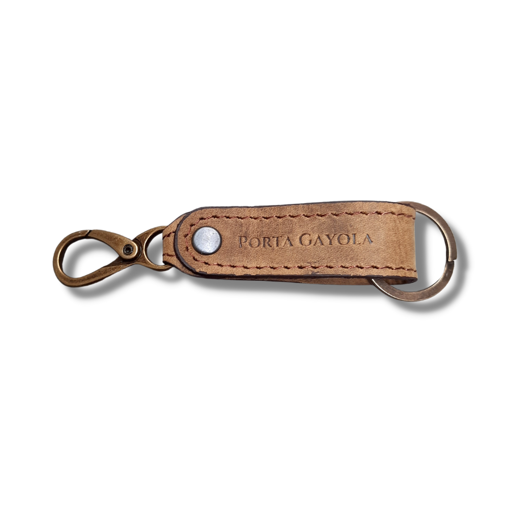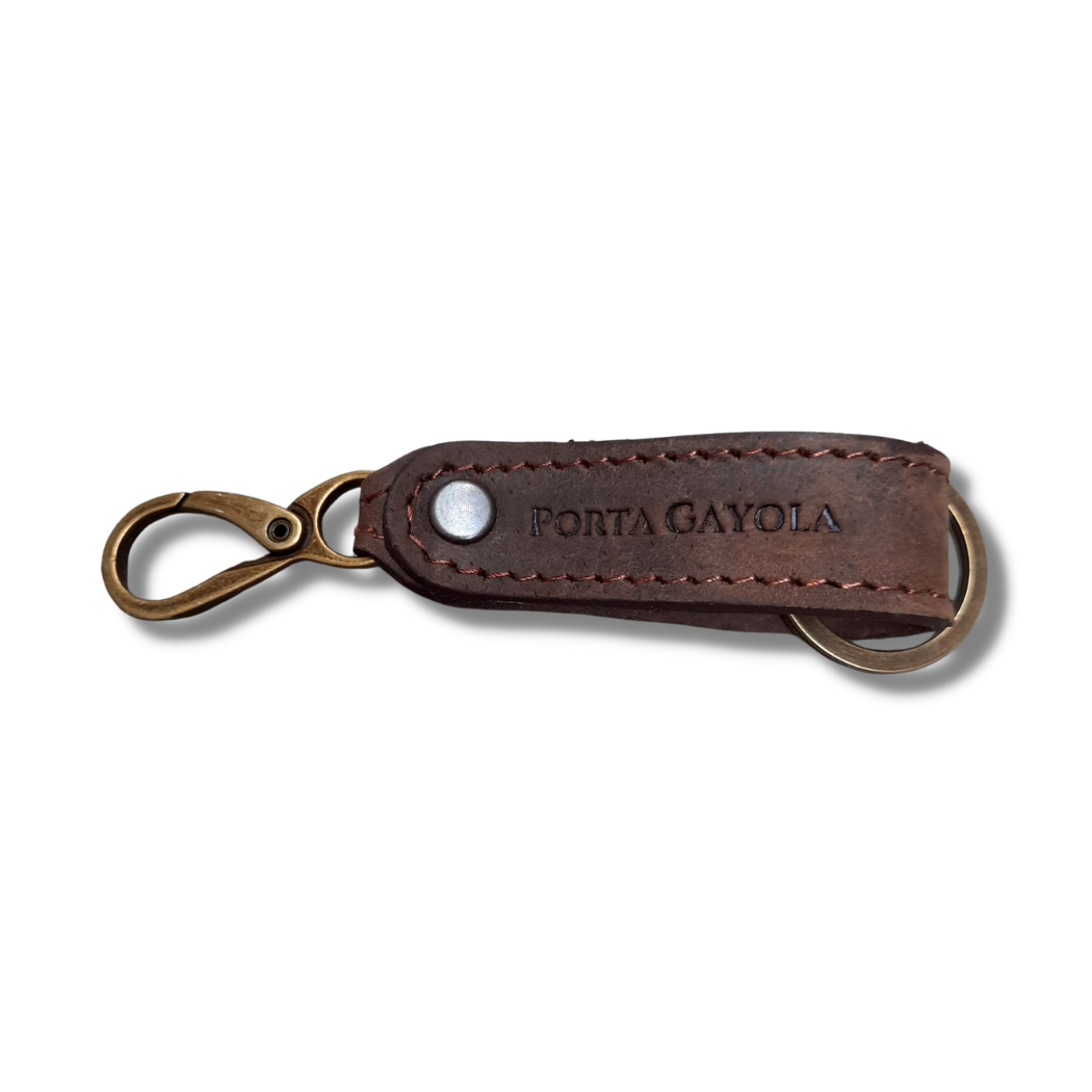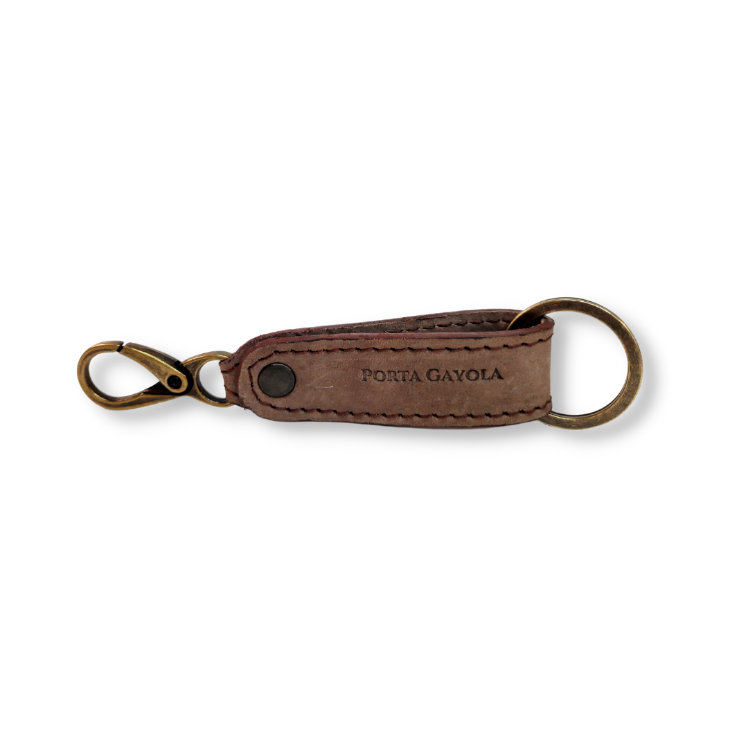 Llavero elaborado en fina piel, con argolla y broche para presilla de la mejor calidad y reforzado con costuras a los costados.