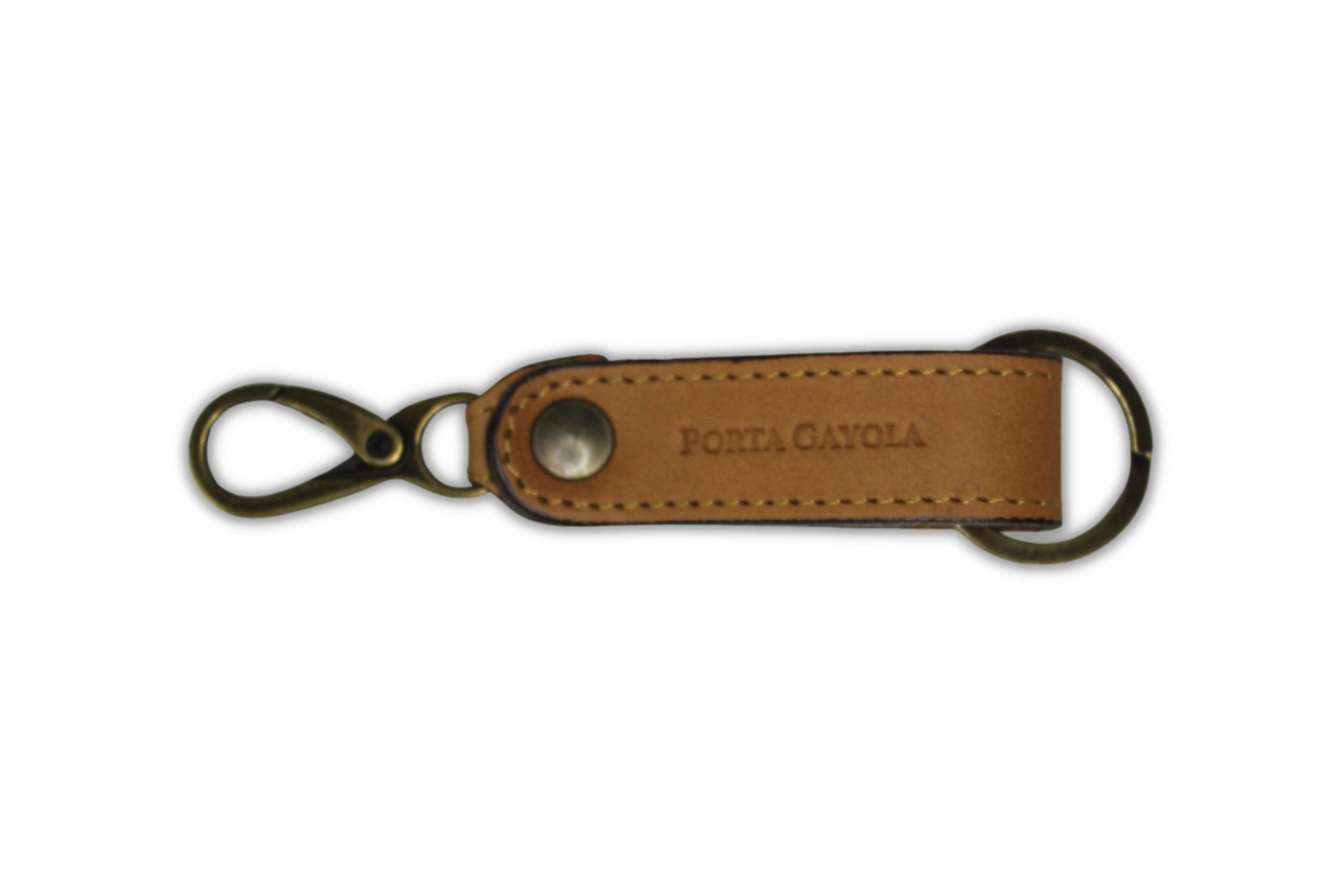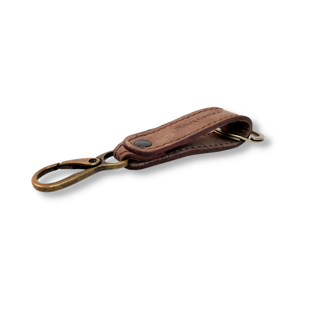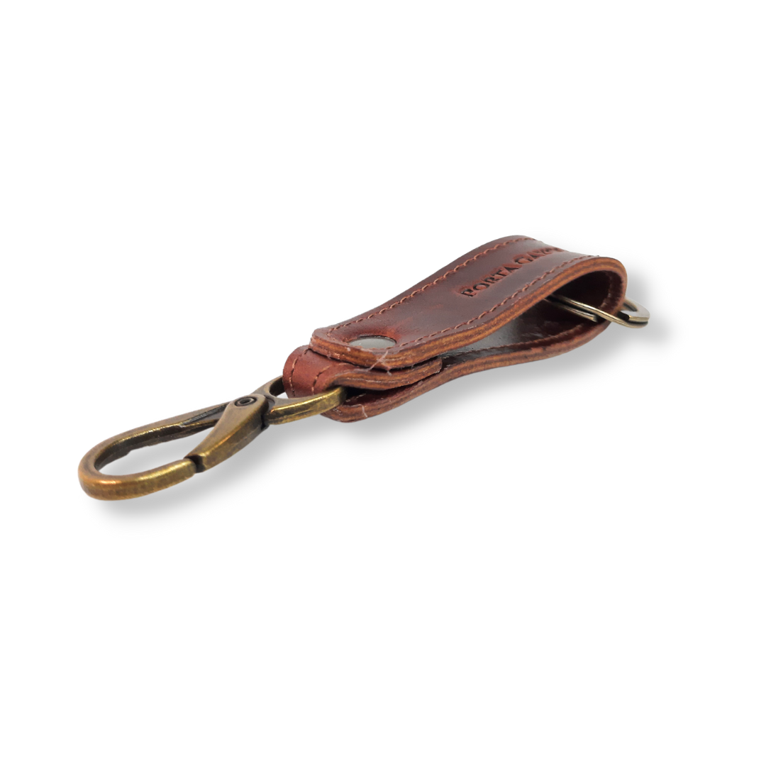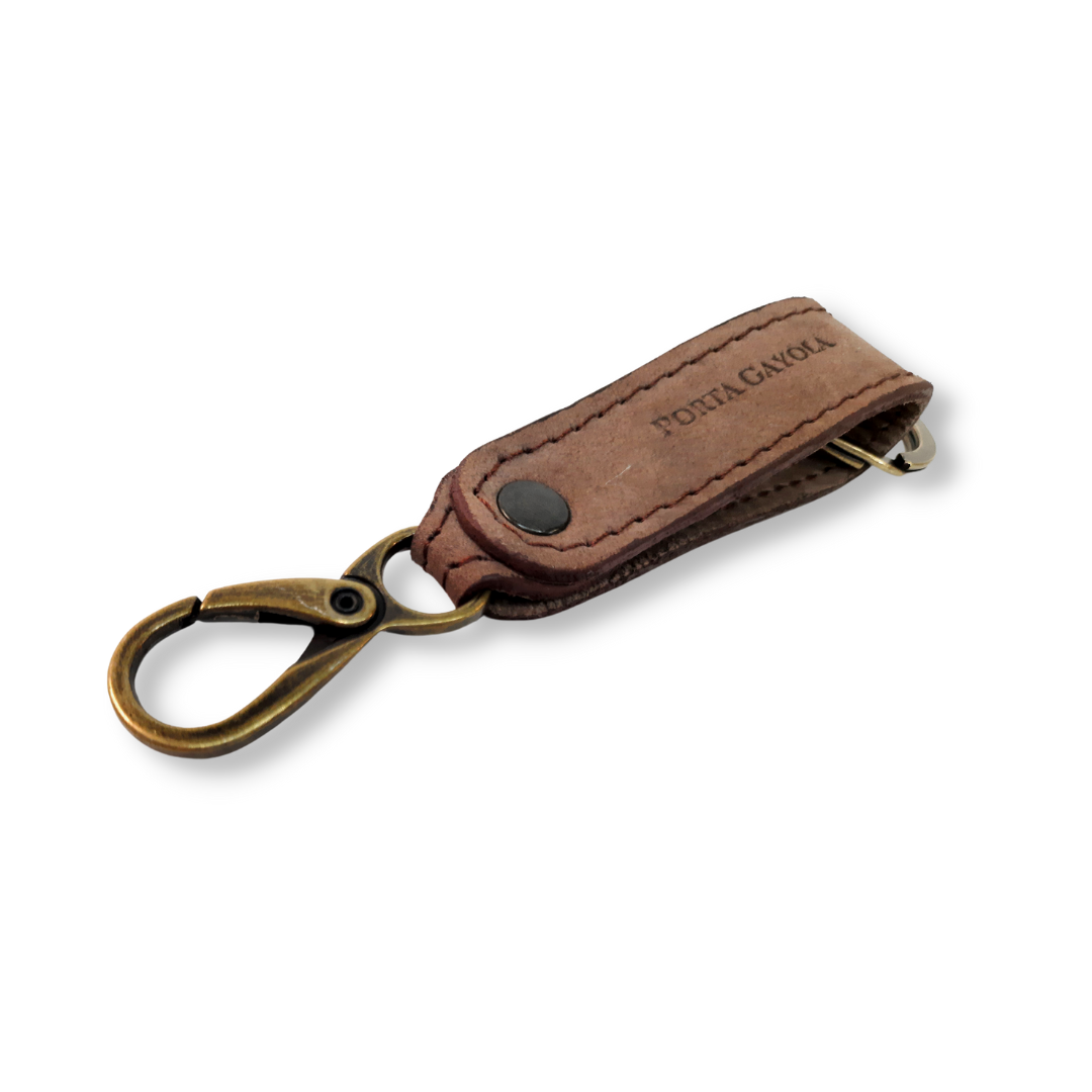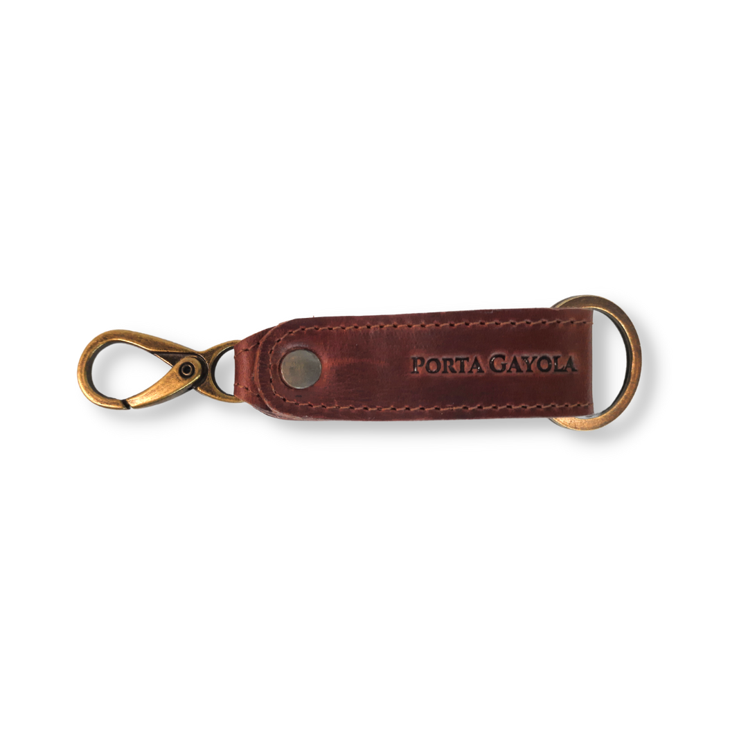 Llavero elaborado en fina piel, con argolla y broche para presilla de la mejor calidad y reforzado con costuras a los costados.