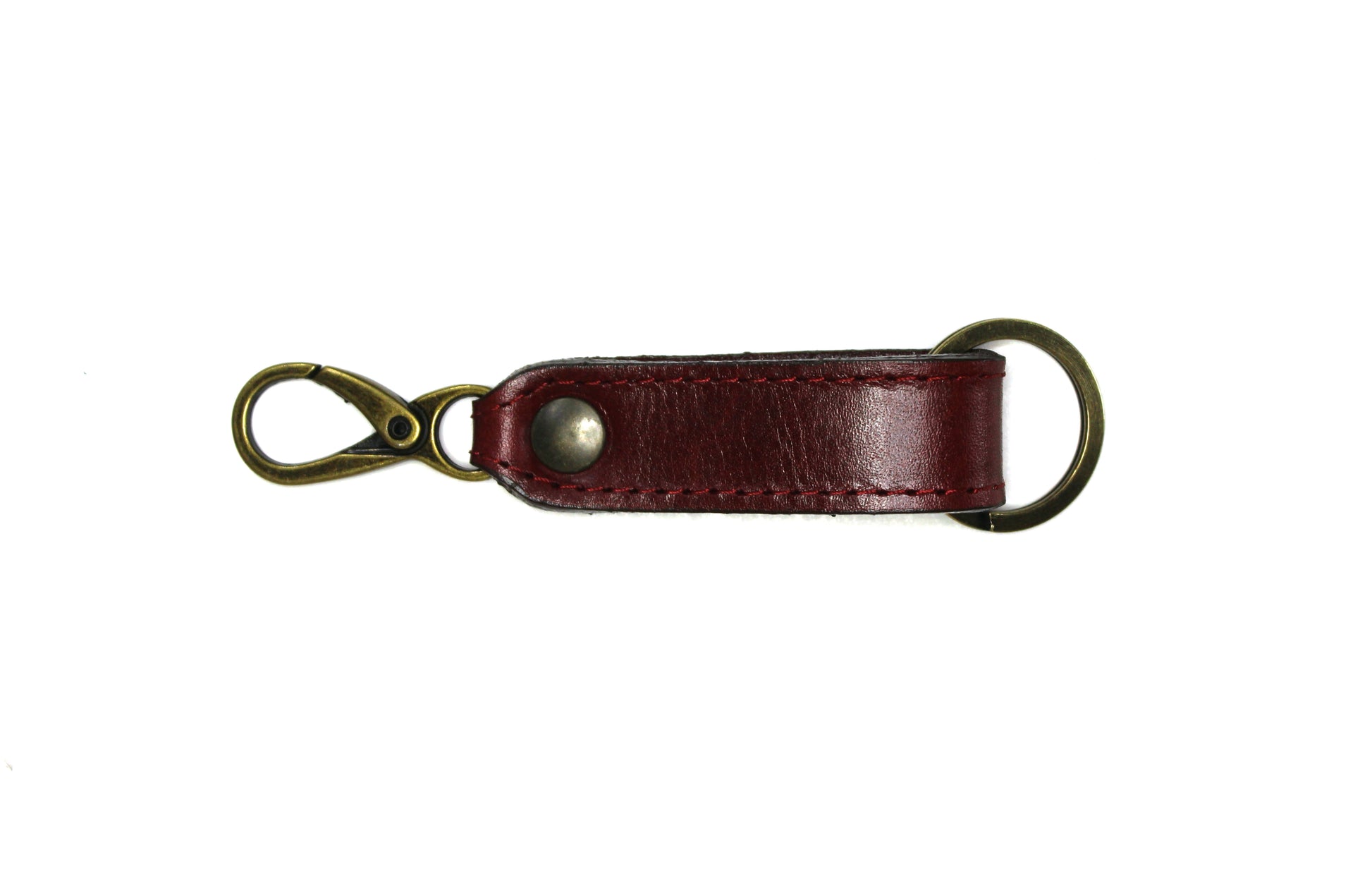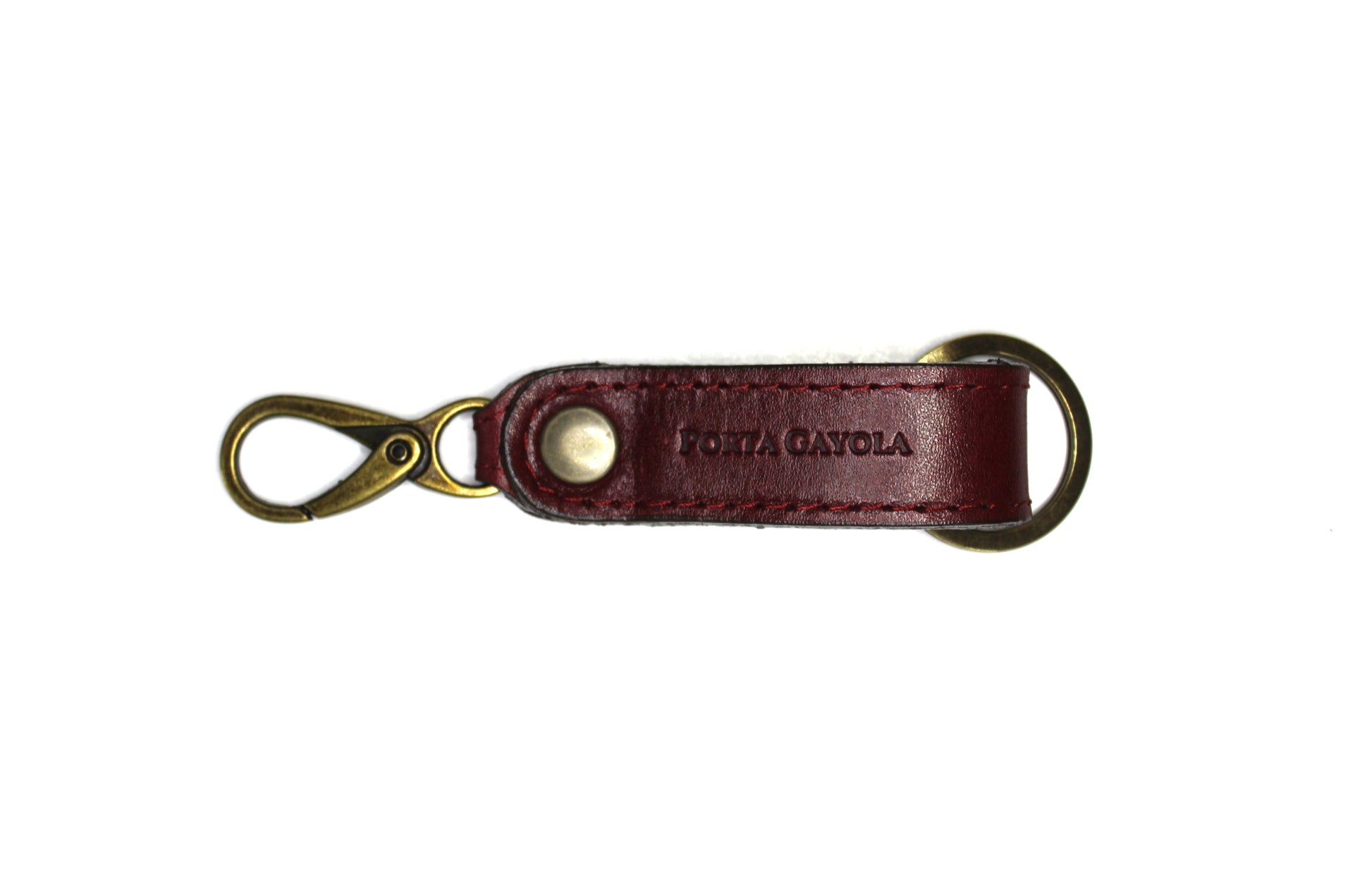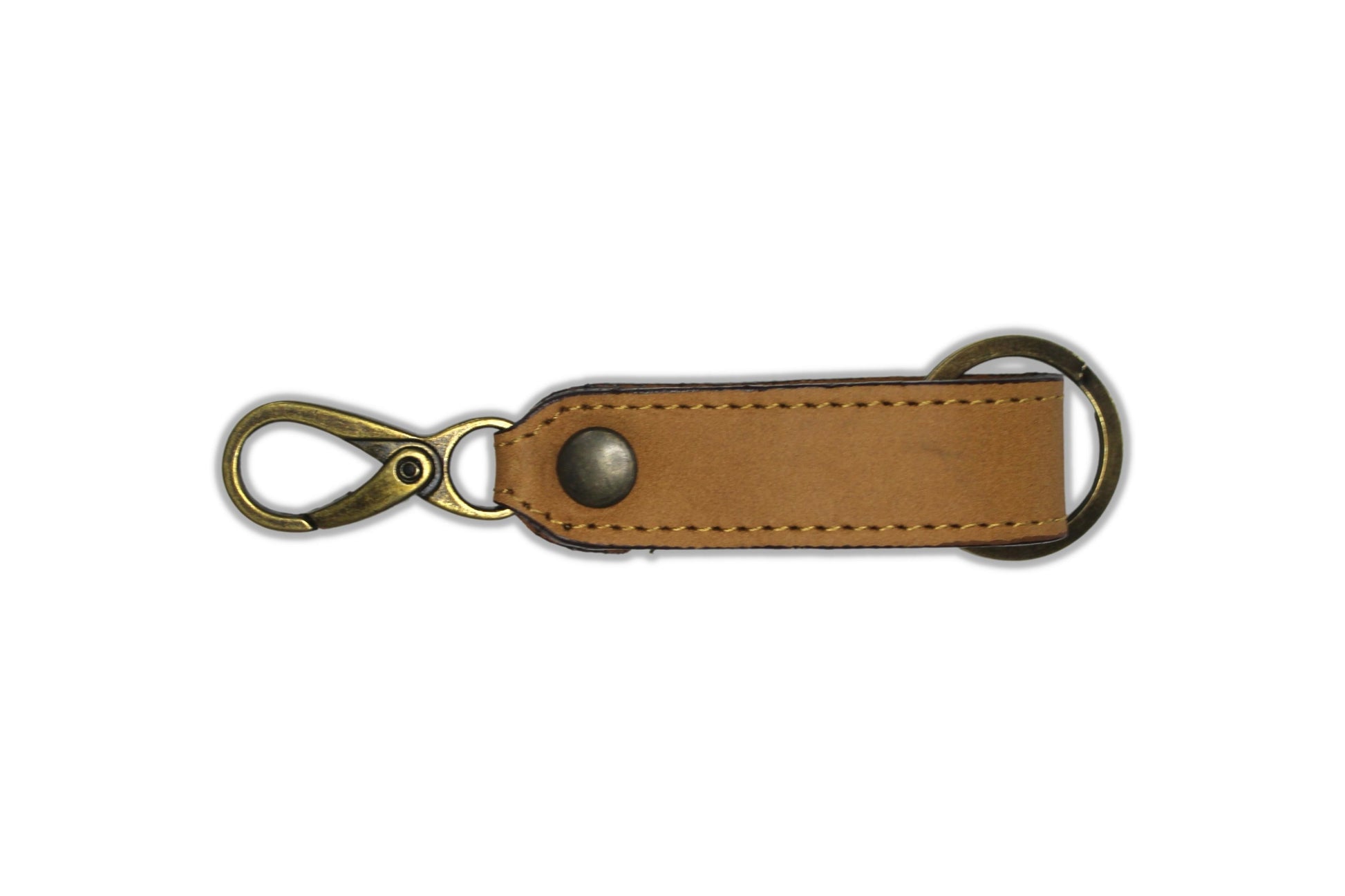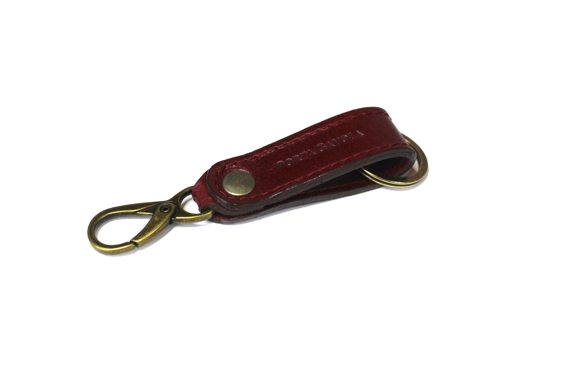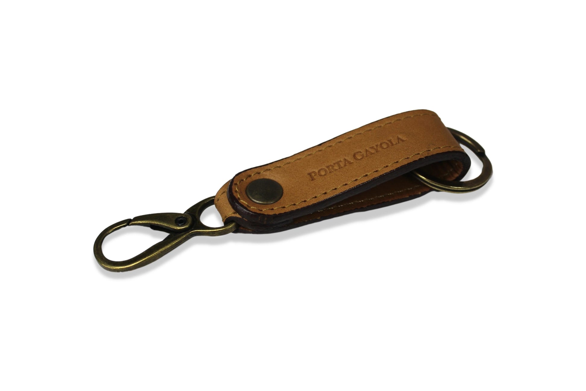 Llavero elaborado en fina piel, con argolla y broche para presilla de la mejor calidad y reforzado con costuras a los costados.