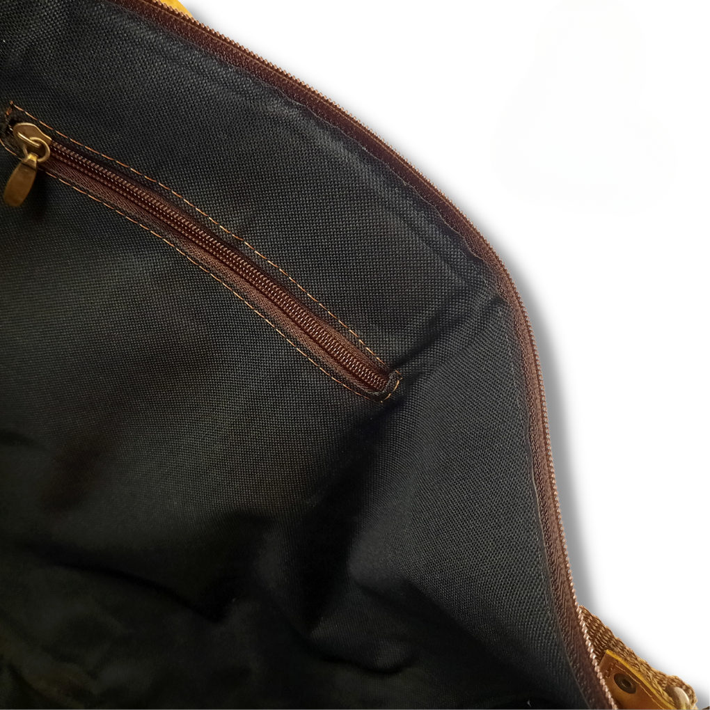 Contiene 2 bolsas exteriores con cierre del lado derecho e izquierdo, una bolsa en el centro de la maleta y en su interior una bolsa con cierre.