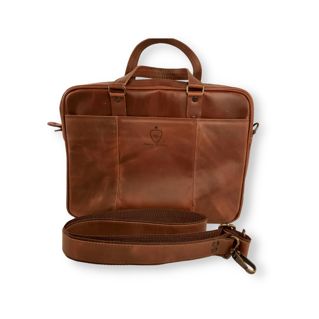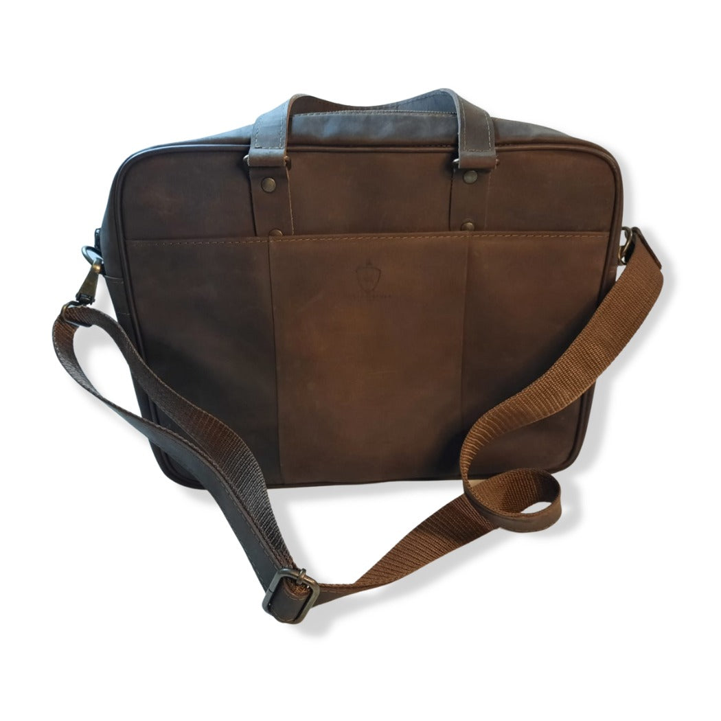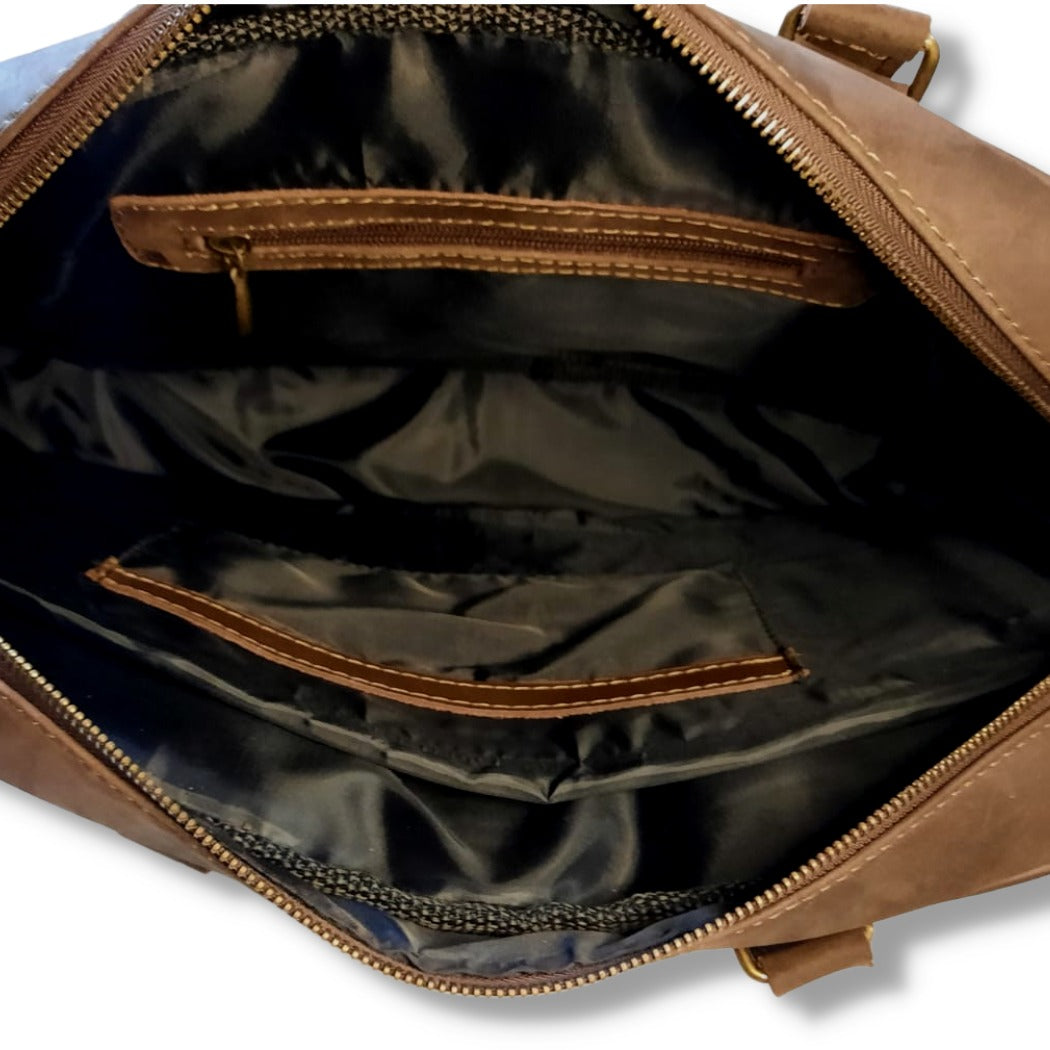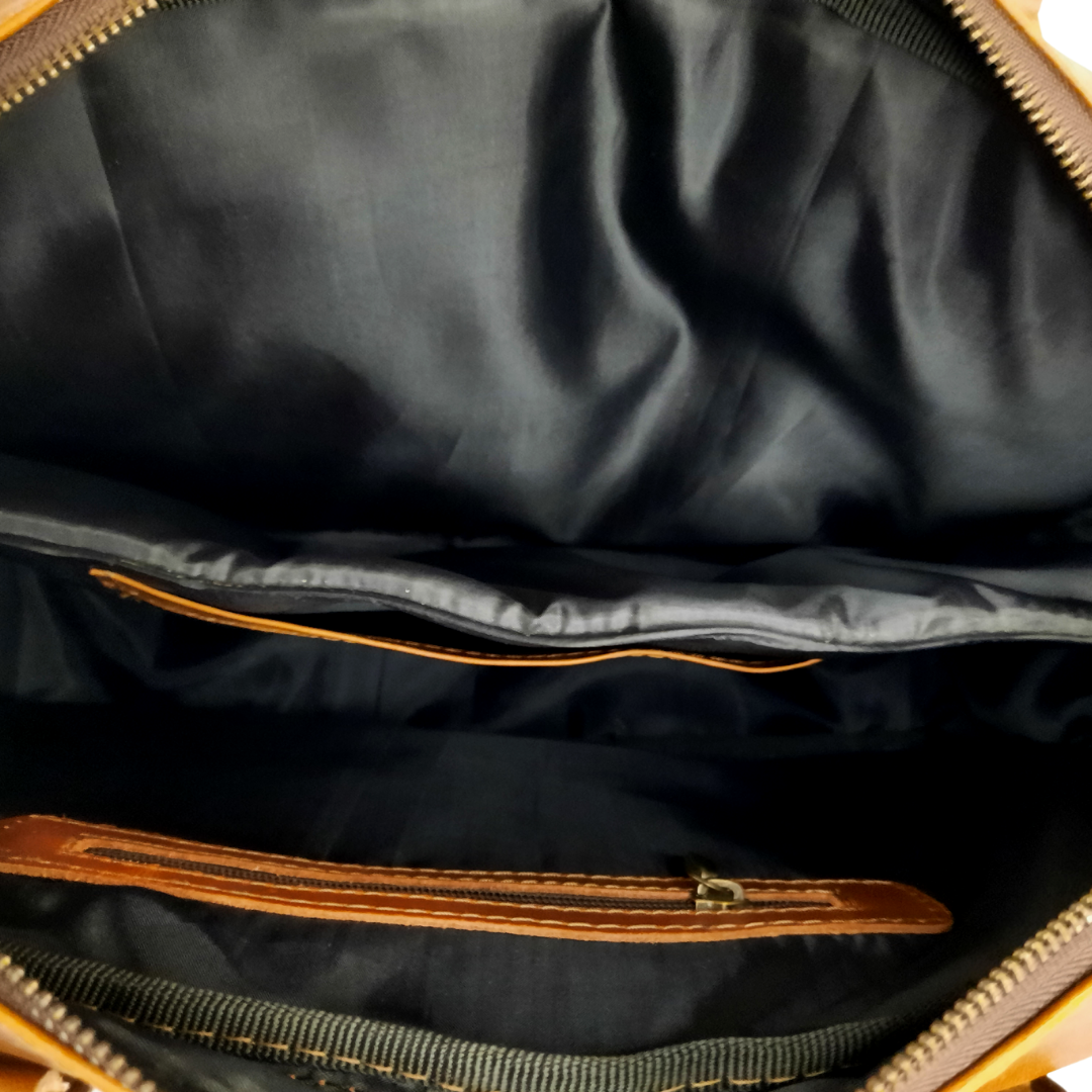 Cuenta con división interior para laptop, bolso pequeño interior de fácil acceso y bolso interior con cierre. Correa de piel reforzada y ajustable.