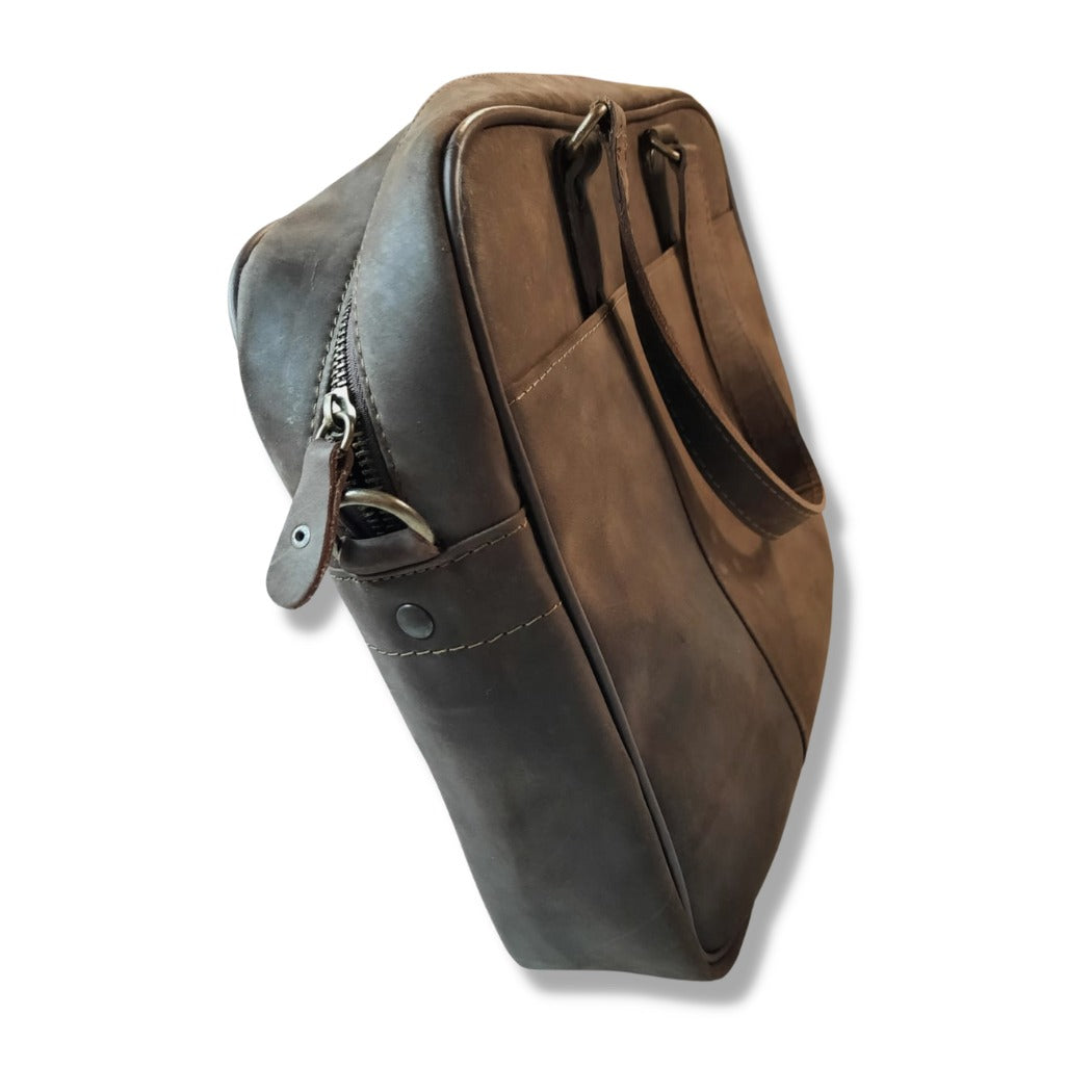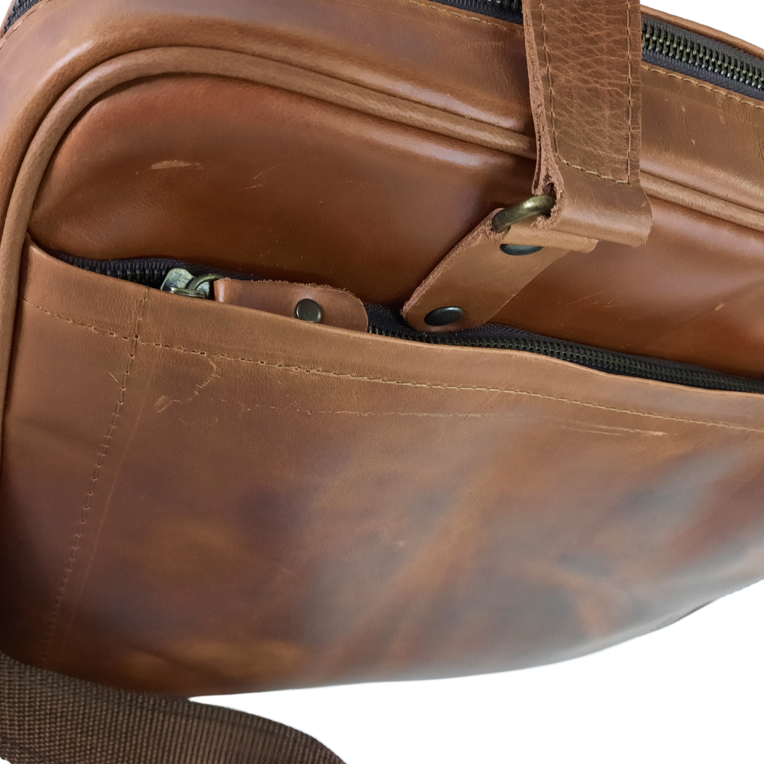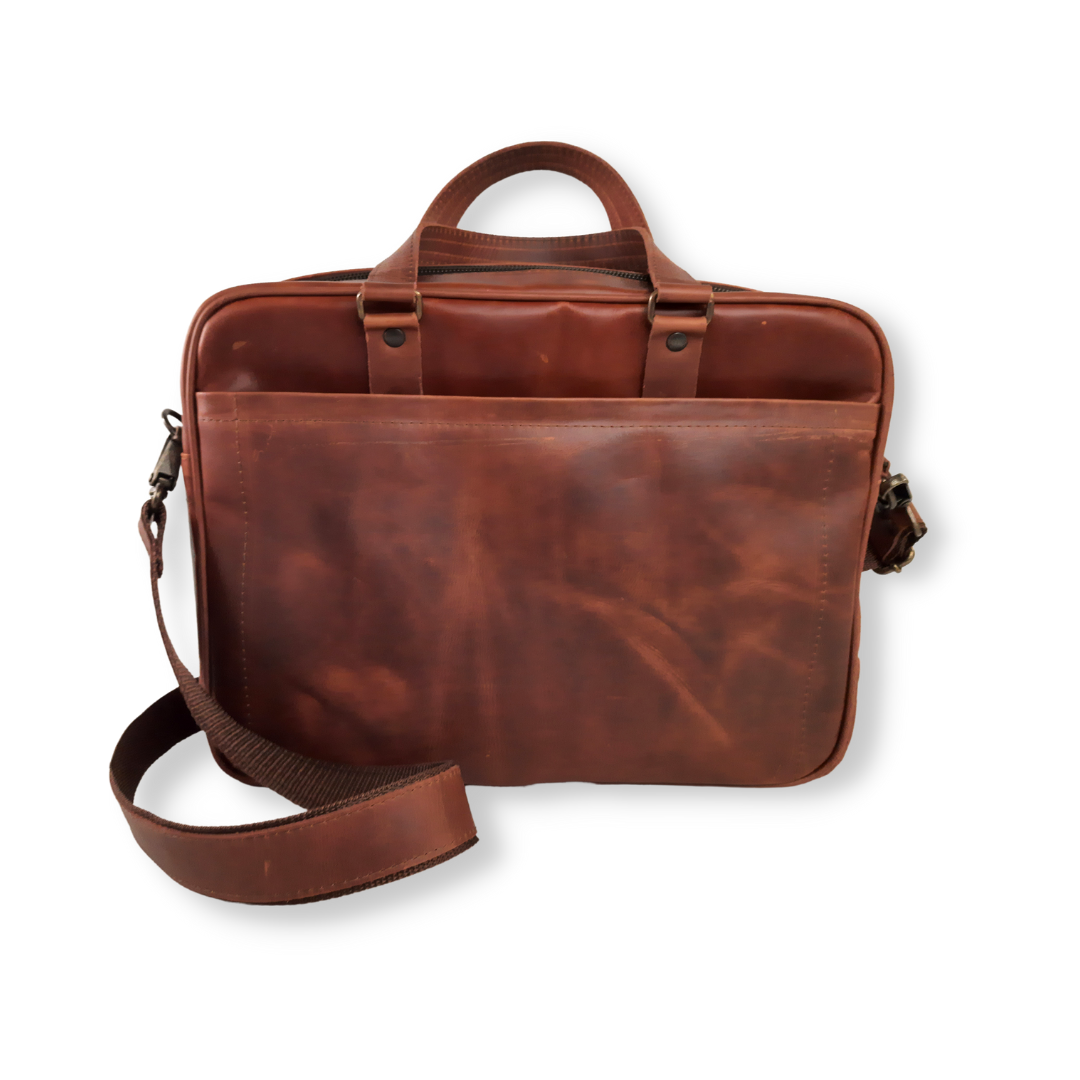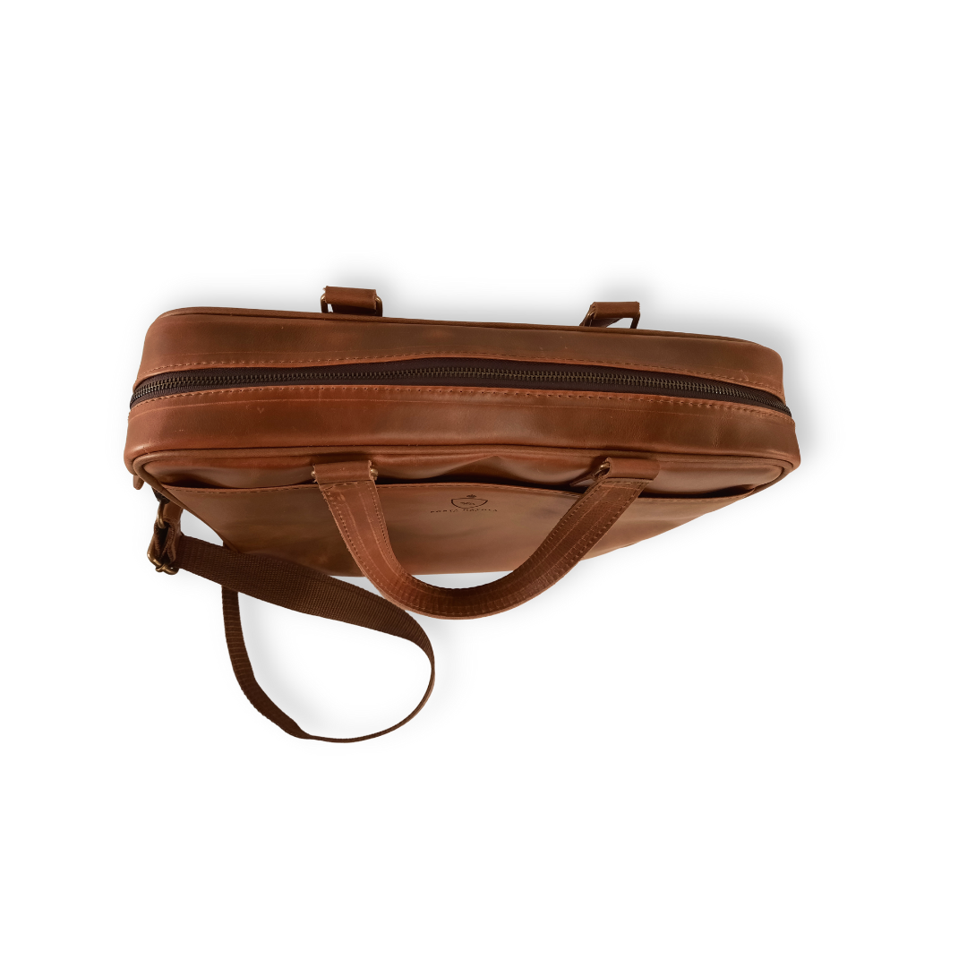 Cuenta con división interior para laptop, bolso pequeño interior de fácil acceso y bolso interior con cierre. Correa de piel reforzada y ajustable.
