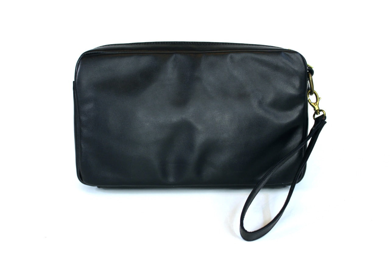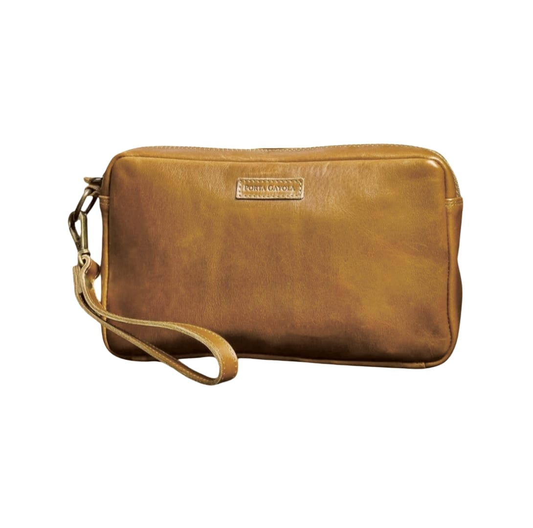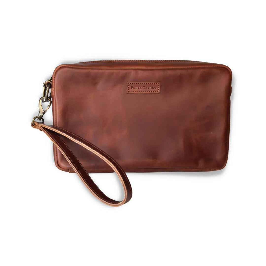 Elegante y práctico neceser delgado elaborado en fina piel con forro interior textil premium.