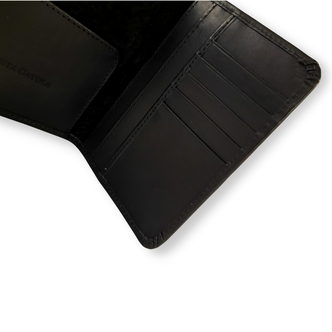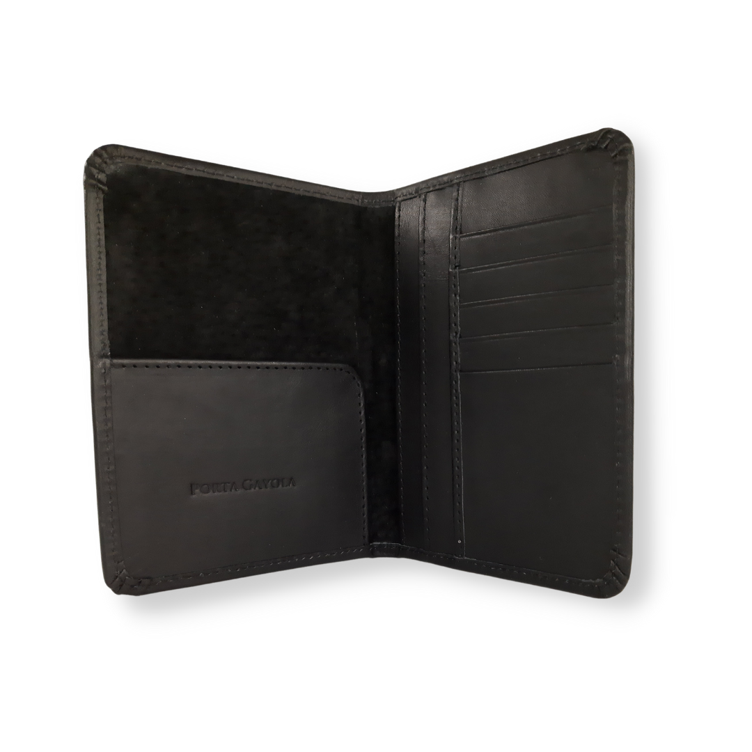 Cuenta con 7 tarjeteros ideales para identificación, tarjetas o VISA, 3 porta documentos o tickets y división para pasaporte y forro interior de suave piel